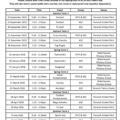 Peak Cluster KS2 Sports day - Tuesday 17 June 2025